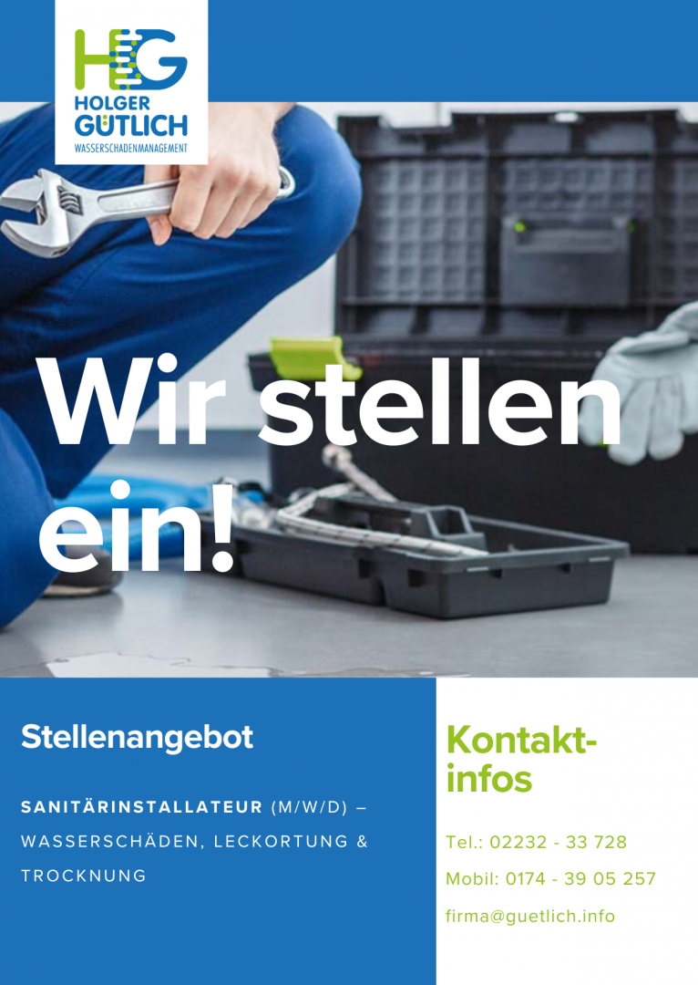 Zunächst reine Sanitärfirma, wurde uns recht bald klar, dass es für unsere Kunden von großem Vorteil wäre, alle drei Gewerke - Sanitär, Leckortung und Trocknung - aus einer Hand zu erhalten.